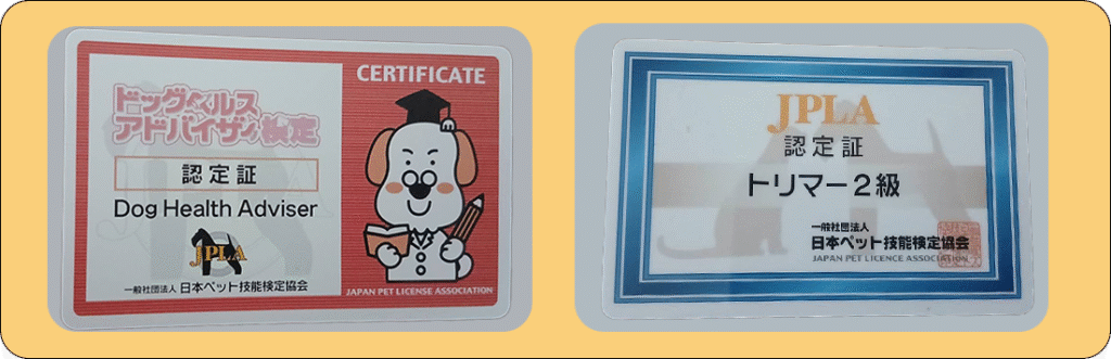また、ドッグヘルスアドバイザーやトリマーの資格も持っておりますので、大切なペットちゃんのご相談にも乗ることができますので、どうぞお気軽にご相談くださいませ。